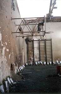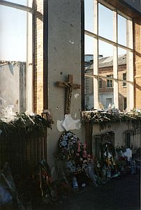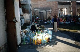 Ляна: Они с братом раньше пошли, а я с мамой позже пошла. Потом мы в спортзале встретились. Мы посередине с мамой, а брат совсем на углу. Елена Фанайлова: То есть вы и разговаривать-то не могли? Ляна: Нас мама не пускала. Стреляли, но я не боялась. У меня вот здесь перелом и осколок. Елена Фанайлова: Это кисть. Ляночка, ты показываешь на кисть. Ляна: Наверное, это палец. Или вот здесь, рядом болит. Вот здесь перелом, а здесь осколок. Перевязку делали. Палец болит только. Елена Фанайлова: Рука правая - неудобно одеваться, умываться? Ляна: Я почти уже левша. (Смеется) Елена Фанайлова: Ты левой рукой пишешь? Ляна: Да, уже начала. (Смеется) Елена Фанайлова: "Город ангелов" - так кто-то недавно назвал Беслан. Наверное, так смеются раненые ангелы, когда собираются выздоравливать: Звучит песня осетинского рэпера Денислана Дудова: - Посвящается всем пострадавшим и погибшим в результате захвата школы города Беслана, Северная Осетия. Мы скорбим вместе с вами. Сентябрь. Осетия. Солнечный день. Елена Фанайлова: Голый кирпичный закопченный каркас, выбитые стекла, крыша покорежена взрывом... Бесланская школа номер 1 на глазах людей стала мемориалом скорби. Горожане ходят сюда каждый день. Школа обложена по периметру живыми цветами, сгоревший пол спортзала выложен венками. На стене - распятие. Все это кажется моментальной фотографией ада. Олег Кусов: Рассказывает бывший заложник Аслан Тебиев. Аслан Тебиев: Кто ругался, кто держался: В основном, старшее поколение, женщины - они уже морально не выносили. Душно было, воды не было. Люди как бы полусонные были. Уже даже не понимали, что делают. Они говорили сперва: "Выпустим", потом сказали: "Молитесь. Кто попадет в ад, кто - в рай. Пока у нас оружие есть, будем отбиваться, а потом все умрем". У детей, во-первых, шок был. Многие уже как бы с ума сходили, не понимали, что делали. Многие теряли сознание - их даже выносили. Вот ребенок уже мертвый - запрещали вынести. А детей их даже не слушали, они кричали, орали, плакали. С кем война? С детьми? Ничтожества! Да они даже не фанатики, это как роботы были. Их подготовили к этому, кому-то это нужно было. Три дня без сна, они как нелюди ходили, их даже на сон не тянуло. Олег Кусов: Третьеклассник Ацамаз Доев 1 сентября пришел в школу вместе с братом, первоклассником Давидом, и мамой Фатимой. Все три дня они просидели в спортзале рядом. Ацамаз сказал мне, что в такой ситуации он не имел права умирать, поскольку считал себя ответственным за жизнь близких людей. Ацамаз Доев: Особенно за брата. Олег Кусов: Но он же тоже мужчина. Ацамаз Доев: Ну, он младший, сильней боялся. От мамы никуда не уходил. Даже если в туалет хотел, я не шел - маму не оставлял. Олег Кусов: У его мамы, Фатимы, напротив, не было никакой уверенности в том, что она и ее дети выйдут из школы живыми. Но Фатиме посчастливилось остаться в живых, хотя она и получила осколочное ранение в ногу. Фатима: Все время они кнопки какие-то переключали. Я думала: если даже уйдут, то все равно это все подзорвут. Но почему-то у них другое отношение было на третий день, уже во время штурма, - сами нас водой поили, ведрами давали: "Только не бойтесь, мы вас не убьем". Это уже было в столовой, там откуда-то печенья было две коробки, большие пластмассовые из-под пива чашки, очень много воды. И сами же нам ведрами несли воду. Говорили: "Кричите в окна и машите занавесками, чтобы пер